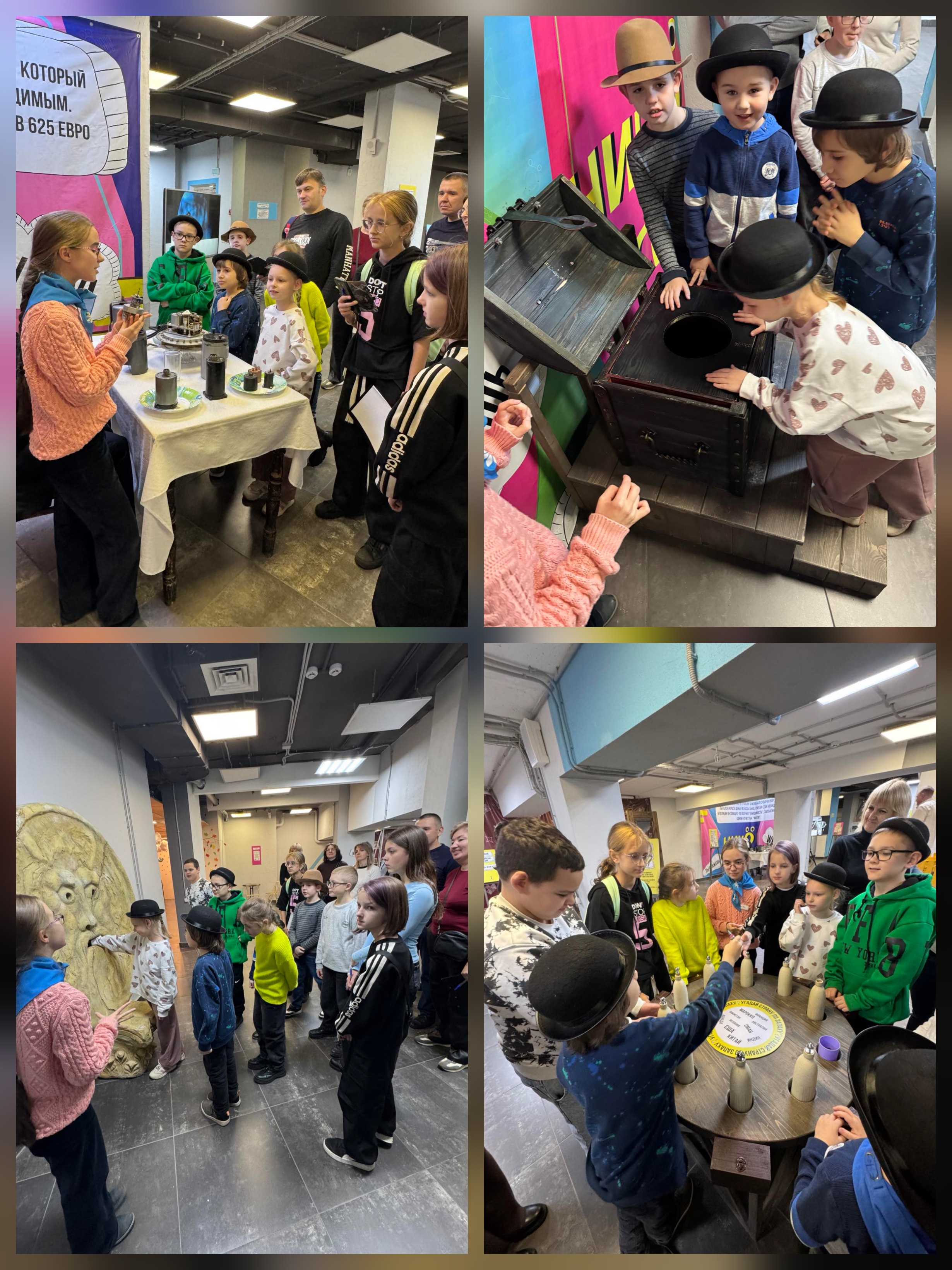 На выставке были представлены более 100 экспонатов со всего мира. В ходе посещения дети сыграли мелодию на фруктах и овощах, поброди по призрачному городу манекенов, узнали, как выглядел древний детектор лжи, угадали страну по запаху.